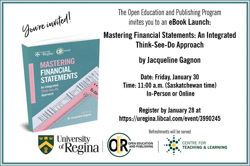 The OEP Program invites you to an ebook launch for Dr. Jacqui Gagnon’s new open textbook, Mastering Financial Statements: An Integrated Think-See-Do Approach.